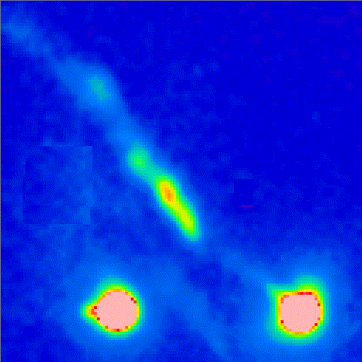 high (-150 km/s) and bow shape structures in front of those, with low radial