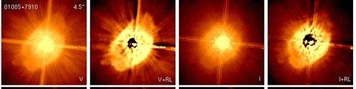 Рис.1. Изображения IRAS01005+7910, полученные в разных фильтрах с телескопом Хаббла