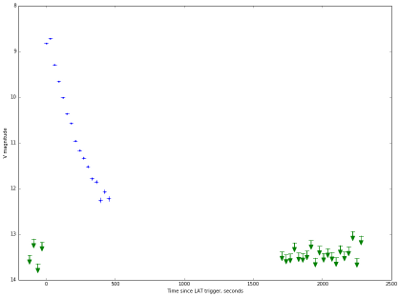 Система зарегистрировала яркую оптическую вспышку в кадре, чья экспозиция включала момент LAT триггера (T0-15.9 - T0+14.1 s) в положении согласующемся с данными Troja et al. (GCN Circ.19588) и звездной величиной около V=8.8. В следующем кадре было зафиксировано некоторое уярчение приблизительно на 0.1 зв.вел, после чего блеск монотонно падал по примерно степенному закону с показателем -1.6 вплоть до V=12.2 в последнем кадре выборки. Во временном интервале, предшествовавшем LAT триггеру, не были зарегистрированы объекты, чей блеск превышал бы V=13.5.