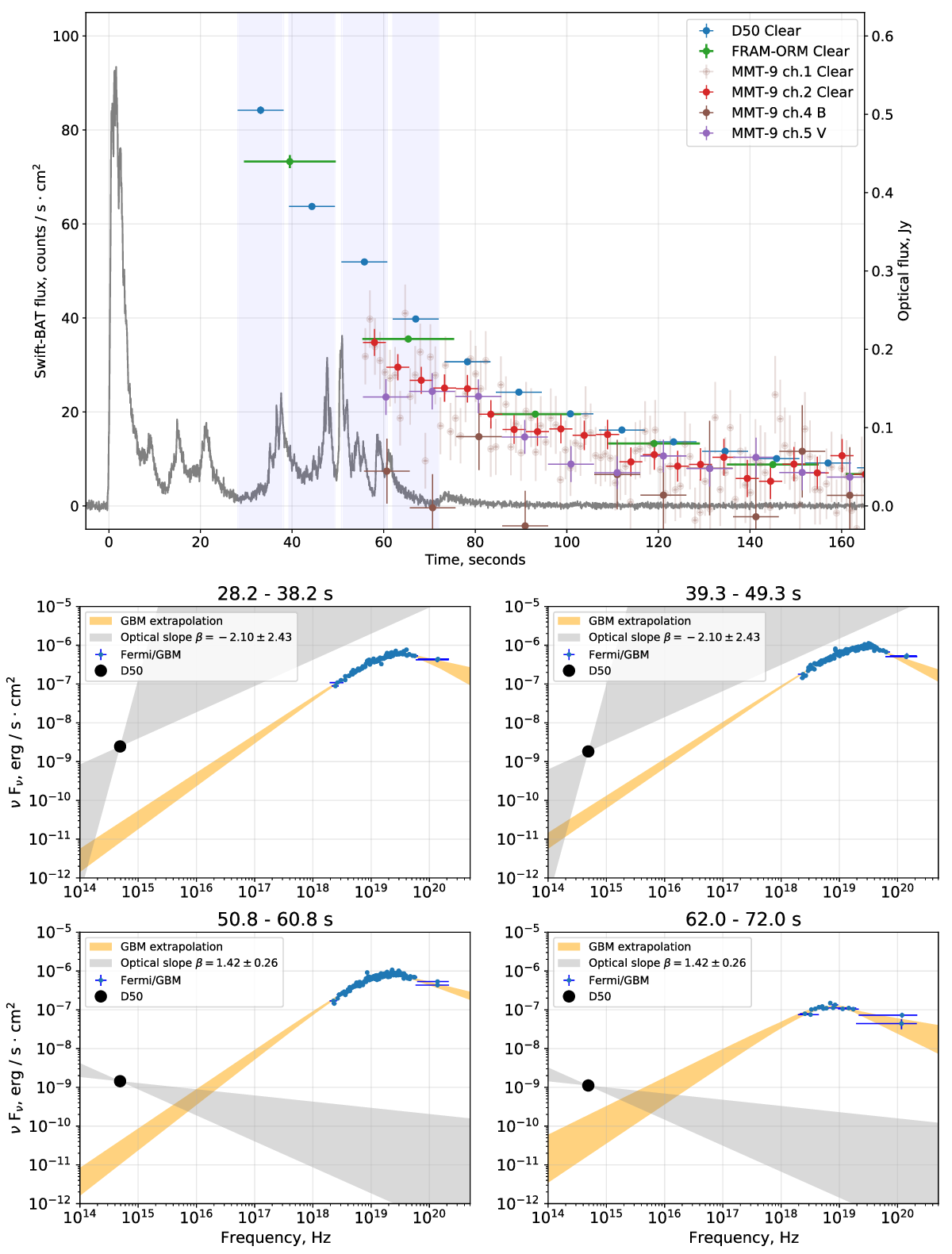 Оганесян Г., Карпов С., Бескин Г., Иванов Е., Перков А., Ляпсина Н. (САО РАН) в кооперации О. Салафия (INAF-OAB), М. Елинек (ASU CAS), С. Ронкини (GSSI), Б. Банерджи (GSSI), М. Бранчеси (GSSI), Я. Штробл (ASU CAS), К. Полячек (ASU CAS), Р. Худик (ASU CAS), Е. Каткова (АО НПК СПП), А. Бирюков (ГАИШ), В. Сасюк (КФУ), М. Мачек (CEICO), П. Янечек (CEICO), Я. Эбр (CEICO), Я. Юричек (CEICO), Р. Куннифф (CEICO), М. Проуза (CEICO)