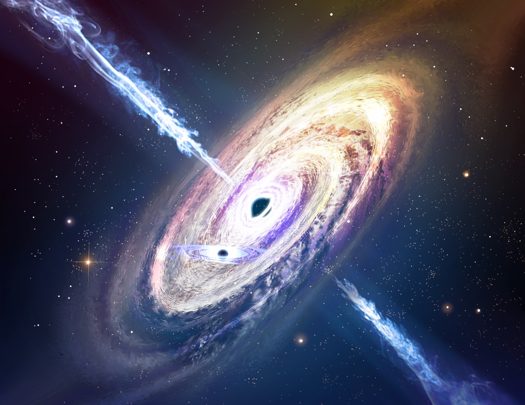 Рис. 1. Сверхмассивная двойная чёрная дыра в представлении художника.