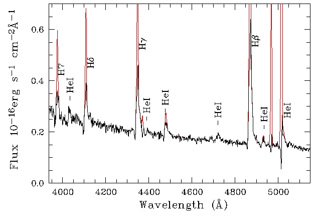 На рисунке снизу показан спектр (6-м телескоп) этой звезды на фоне