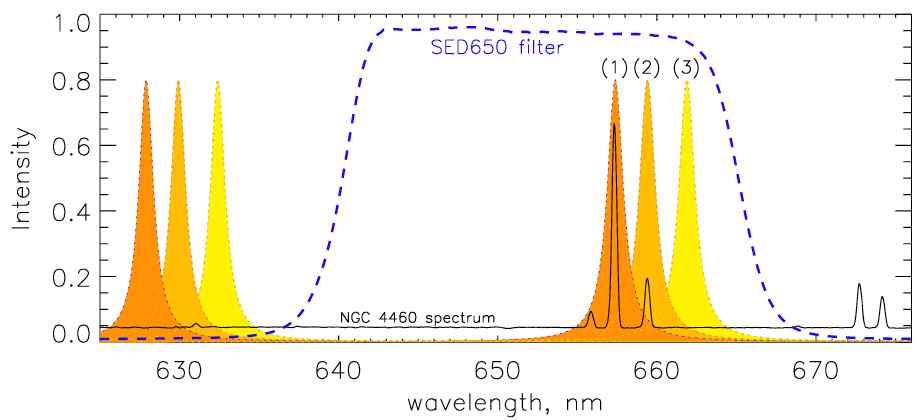 Фильтр CWL, nm FWHM, nm Эмиссионные линии (красное смещение)